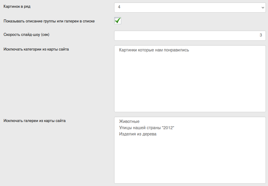 Настройки модуля "Галерея"