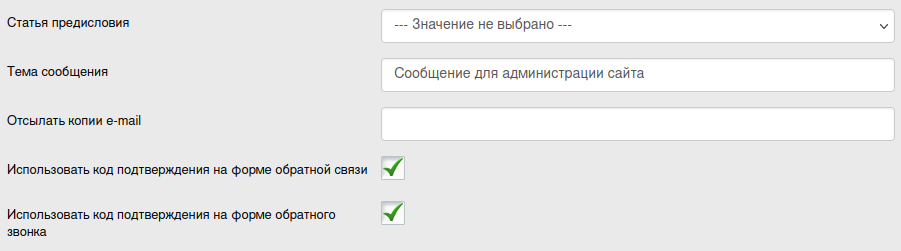 - Использовать код подтверждения на форме обратной связи