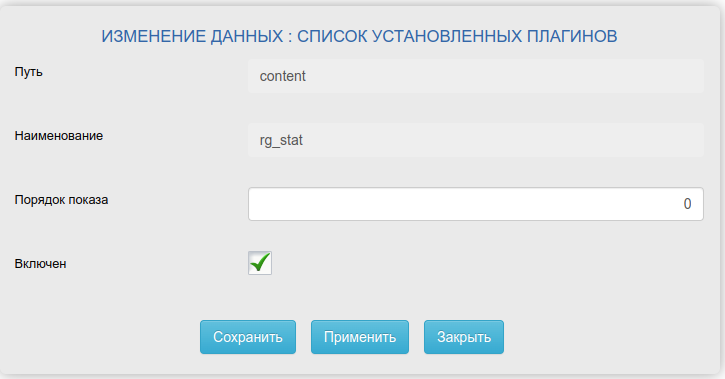 - Порядок отображения - влияет на порядок вызова конкретного плагина при возникновении события в системе.