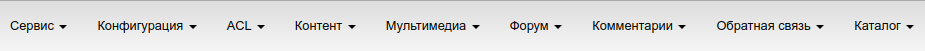 Раздел администрирования системы содержит основное меню, которое позволяет перейти к настройкам или наполнению содержимым любого модуля системы.
