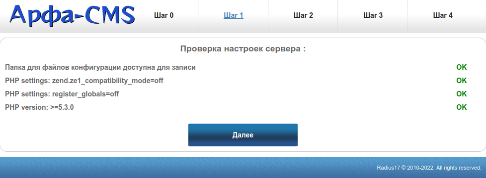 Шаг 0: Прочитайте "Соглашение об использовании системы управления контентом Арфа-CMS (Arfa-CMS)" и примите его.