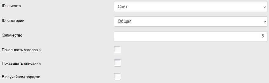 В дополнение к общим для всех виджетов, имеет следующие настройки: