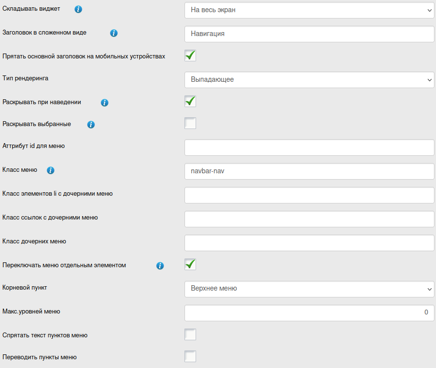 Виджет Меню (menu)