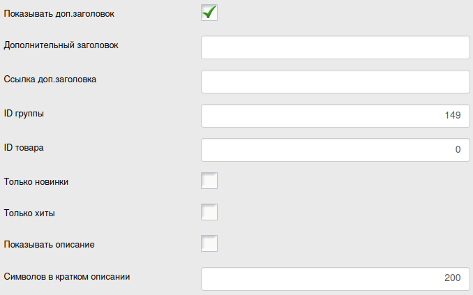 В дополнение к общим для всех виджетов, имеет следующие настройки: