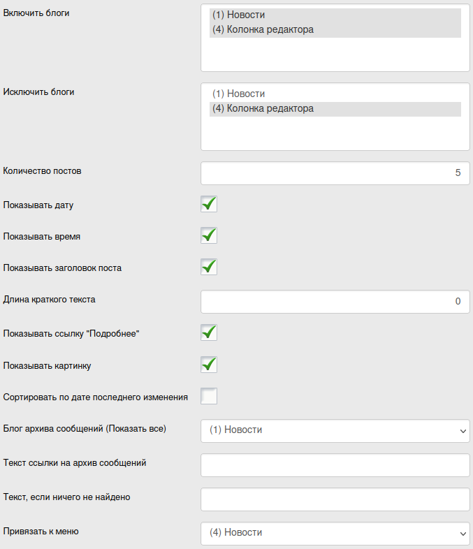В дополнение к общим для всех виджетов, имеет следующие настройки:
