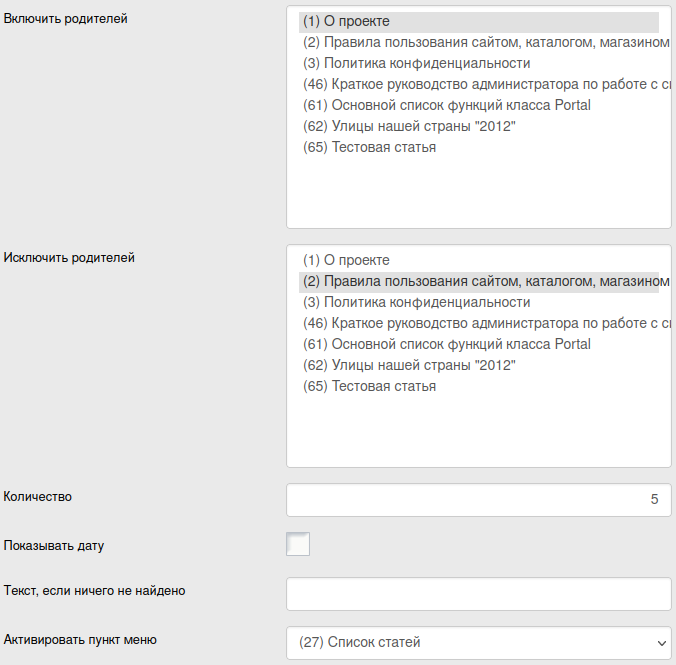 Виджет Список статей (articlelist)