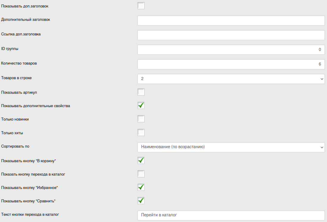 В дополнение к общим для всех виджетов, имеет следующие настройки:
